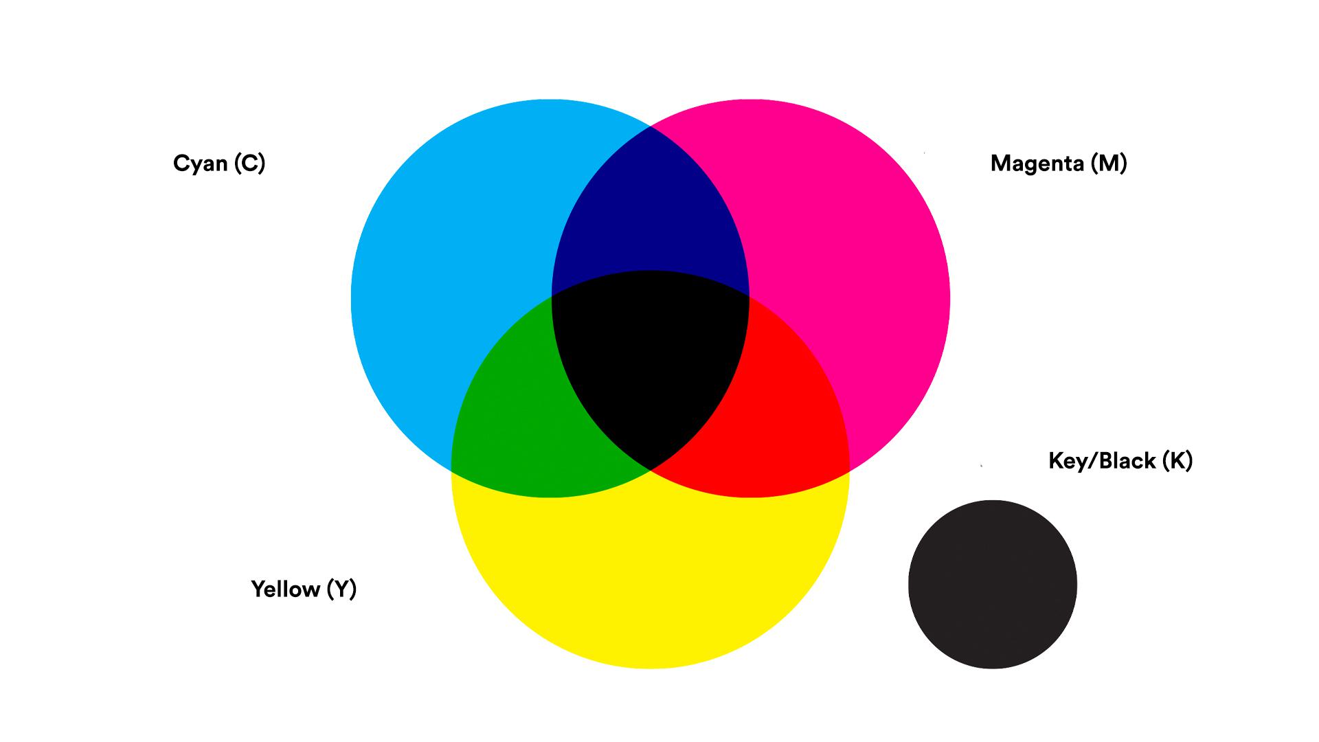 CMYK stands for Cyan, Magenta, Yellow and Key. You can think of this as Blue, Red, yellow and black. You may also come across it as ‘process colour’ or ‘four colour’ on certain programmes.